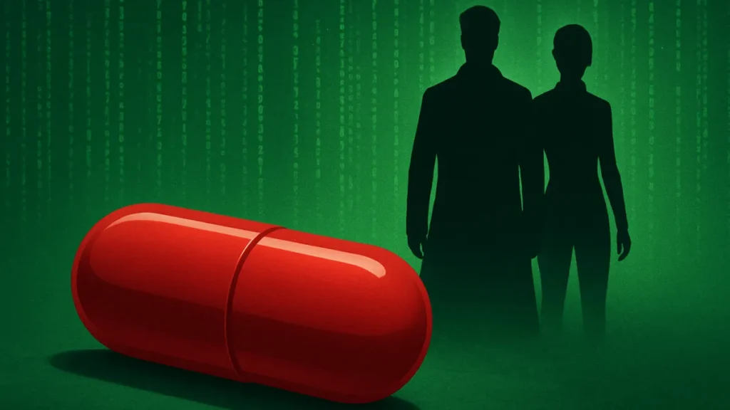 A tal pílula aparece como um objeto simples, mas tem peso simbólico. Ela marca uma passagem entre dois estados: a segurança da ilusão e o risco da verdade.