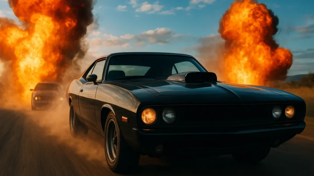 - Perseguição central: cortes claros e planos longos alternados permitem que o espectador acompanhe a trajetória dos veículos.